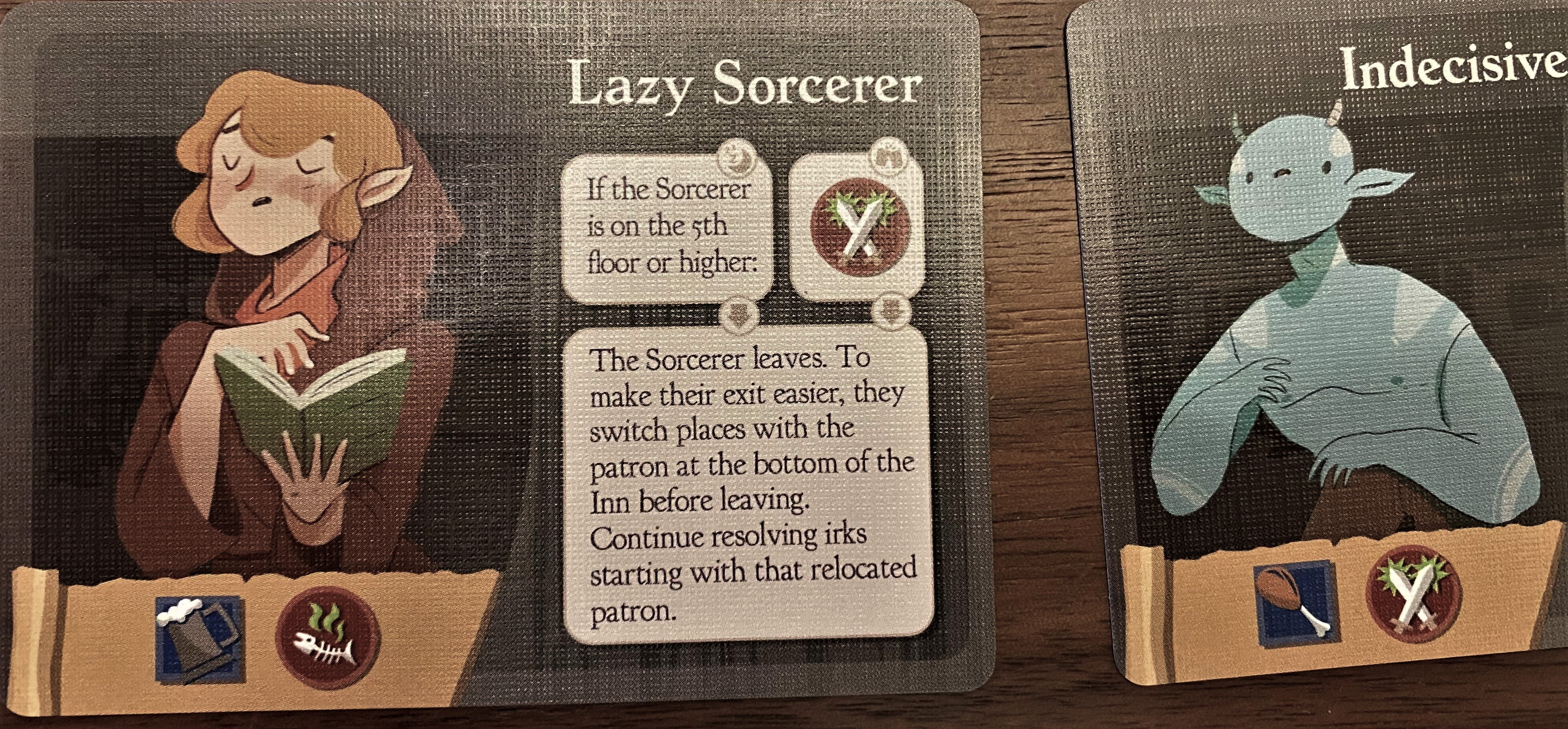 The game is simple. Each turn you choose someone in the "bar" and put them in the hotel, then you resolve each card's annoyances based on a couple of rules, and determine if you have any angry customers and leave. If you make it to the end of the deck without 8 customers leaving you win. It's concise concept that also represents the theme of running a successful hotel.